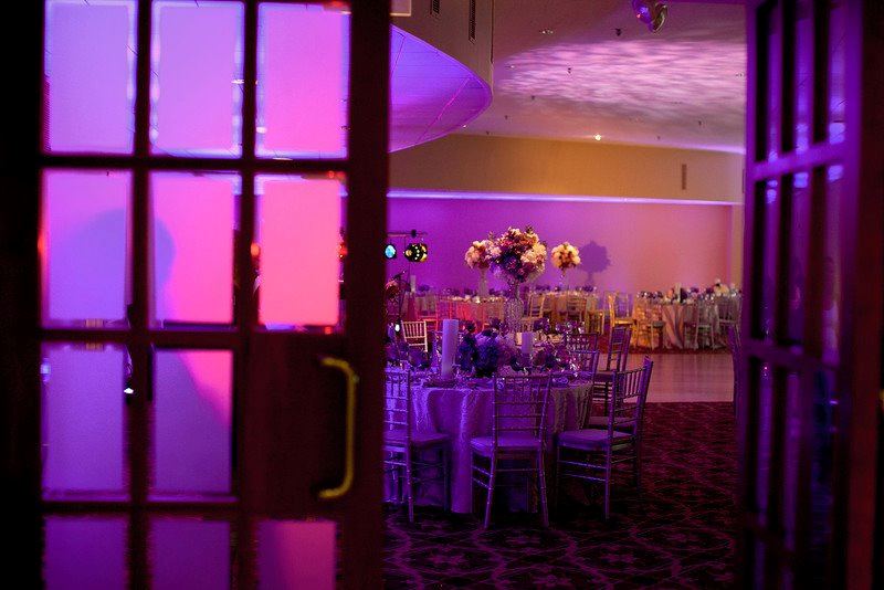 A happy inviting reception the beautiful ballroom the tables the flowers the music and your dream wedding cake.