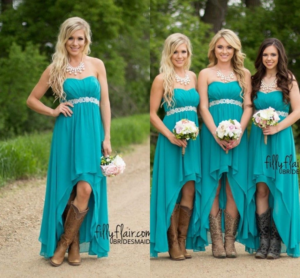 Country Charm Bridesmaid Dress With Boots Turquoise Bridesmaid